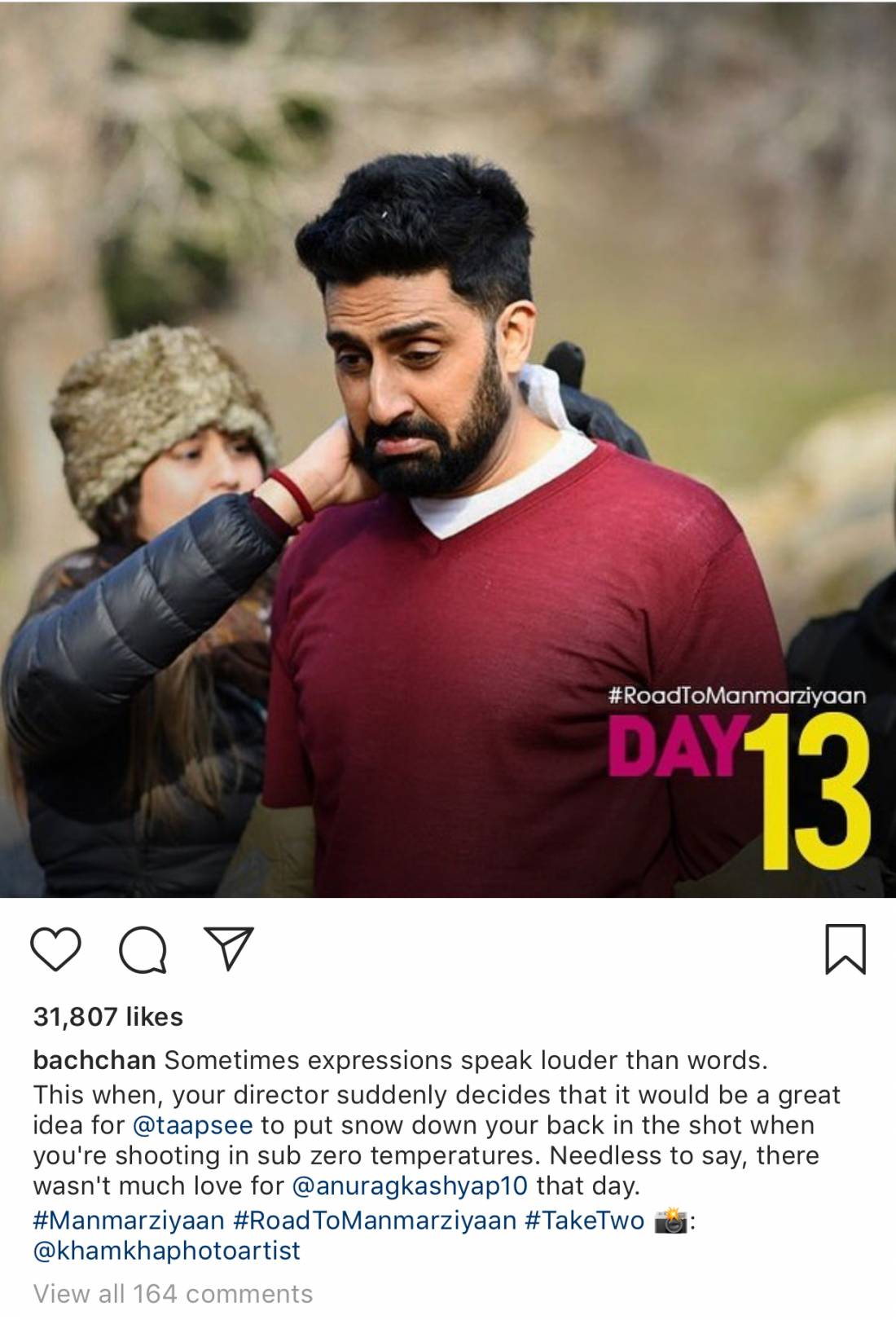 Abhishek Bachchan in his upcoming romantic flick Manmarziyaan is all set to make you fall in love with his on-screen charm this September. While all of us can’t keep up with the wait to watch Junior Bachchan on the silver screen, we’ve now learned that the actor is making trends using #RoadToManmarziyaan on his Instagram handle. He has been sharing unseen pictures and his experiences from the sets of the film which are sure to brighten up your day. In no time, Junior Bachchan’s social media handle looked flooded with love pouring from all over and such massive uproar seems noteworthy.