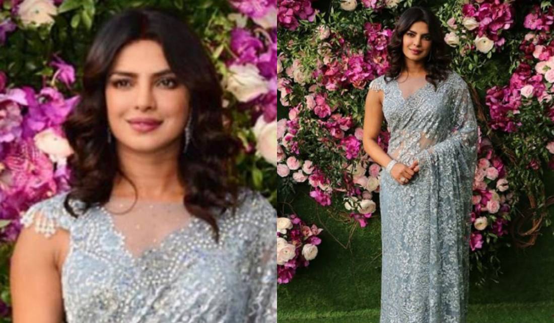 Also making heads turn at the occasion is Desi Girl Priyanka Chopra Jonas who looked drop dead gorgeous in a light blue net saree. She paired the look with her wavy locks and subtle makeup.