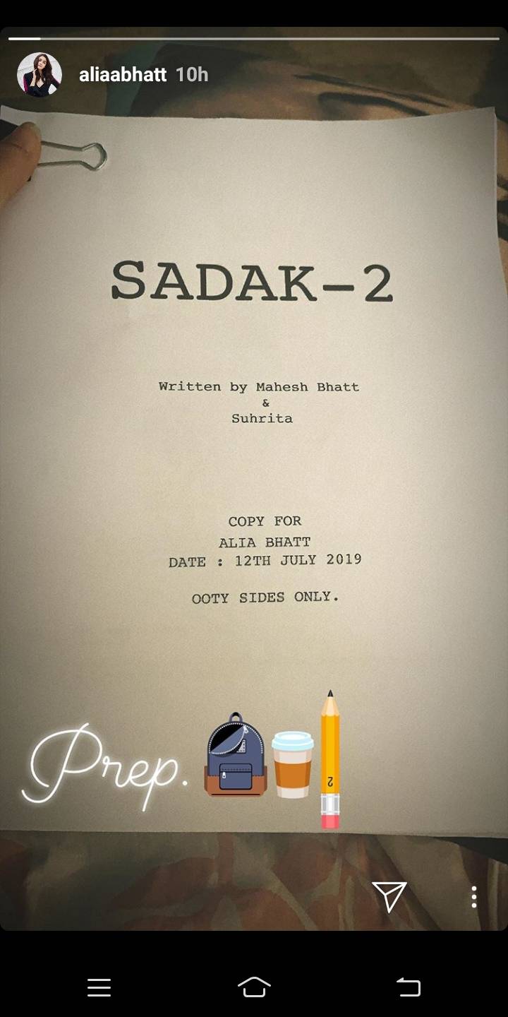 Alia Bhatt is currently having a busy time indeed. The actress was last seen in the film Kalank. She was also shooting for the film Brahmastra opposite beau Ranbir Kapoor. The actress has now begun prepping for her film Sadak 2 for its Ooty schedule. Alia will be collaborating with her dad Mahesh Bhatt and sister Pooja Bhatt for the film. Alia shared a picture of her prep for the film.