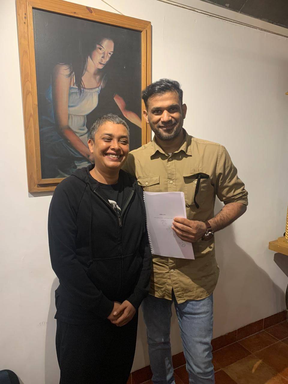 He made time for it from his shooting schedule. Around the time when he left, he was seen carrying a script draft which he was holding close to his chest to not let the cat out of the bag too soon. But if this picture is any indication, the cat’s out of the bag already!