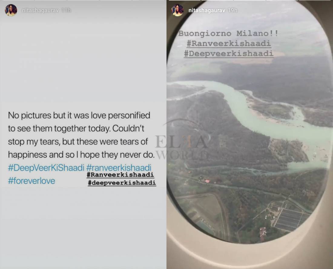 The wedding rituals of Deepika Padukone and Ranveer Singh begins today at the lavish Villa Del Balbianello in Italy. The family and close friends of the duo have reached Italy and preparations are in full swing. Well, Ranveer's stylist Nitasha Gaurav dropped us a hint about the function today at her social media. She wrote, 'No pictures but it was love personified to see them together today. Couldn’t stop my tears, but these were tears of happiness and so I hope they never do. #DeepVeerKiShaadi #ranveerkishaadi #foreverlove'. The couple have requested a No Pictures policy from their guests.