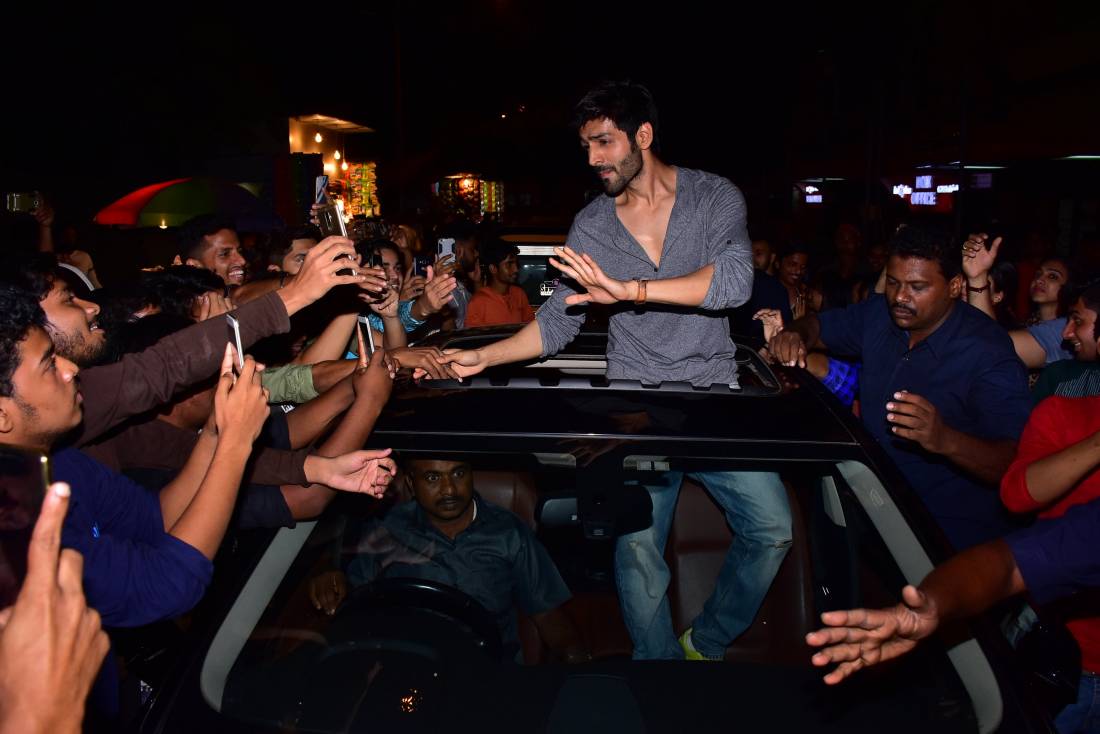 Everyone rushed and hurried to meet the new superstar and click selfies with him. Kartik was surely amazed by receiving so much love and warmth from his fans and everyone praising his role in the film. But the crowd soon became unmanageable. The crowd went berserk watching their ever-smiling-actor posing with fans and didn’t allow him to pass through them. Soon the roads nearby were clogged by heavy traffic and Kartik couldn’t move a bit. The actor was mobbed and eight security guards were called to his rescue. Without the help of the security it was impossible for him to take a footstep. Sharing this surreal experience, Kartik Aaryan says, “My parents, who were with me, were overwhelmed in the beginning, but later got scared after some people started banging against my car for pictures. I had to oblige them by coming out of the sunroof . The response to the film and to my performance feels surreal. . I’m proud of the film and the efforts of the entire team, including my director Luv (Ranjan) and my co-actors.”
