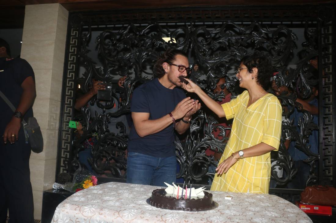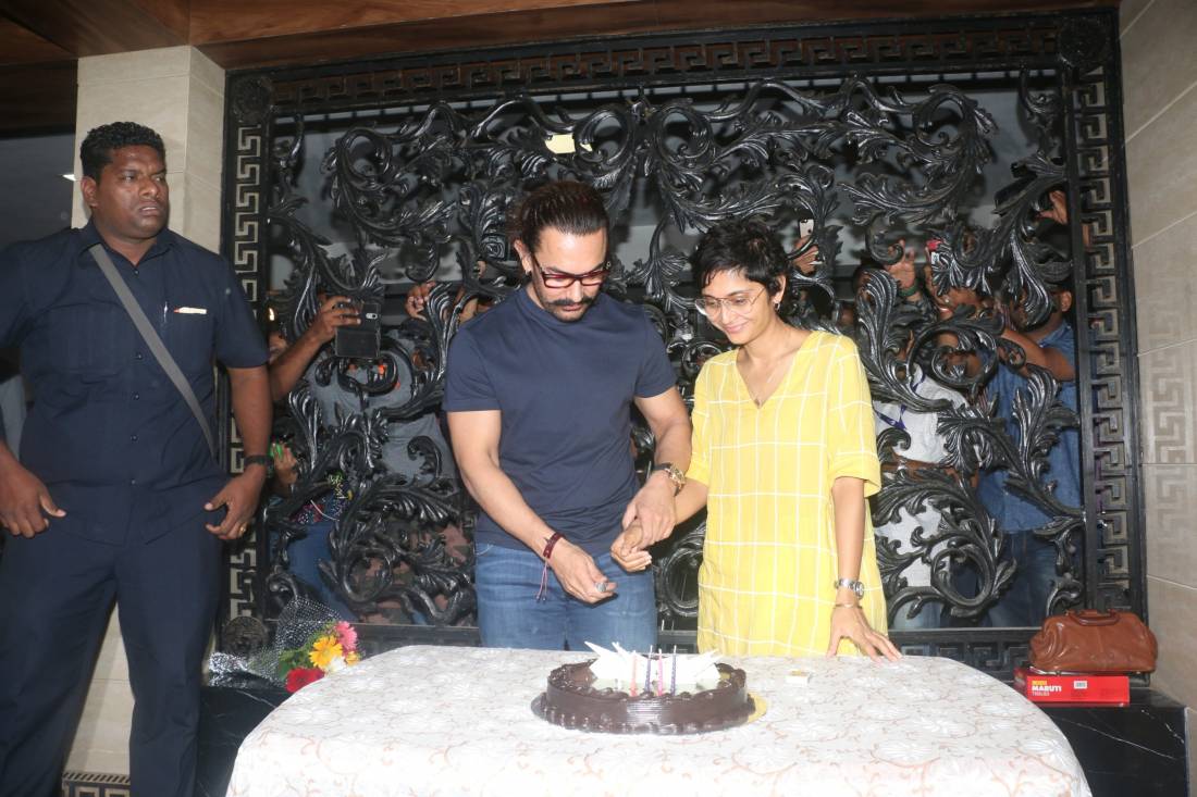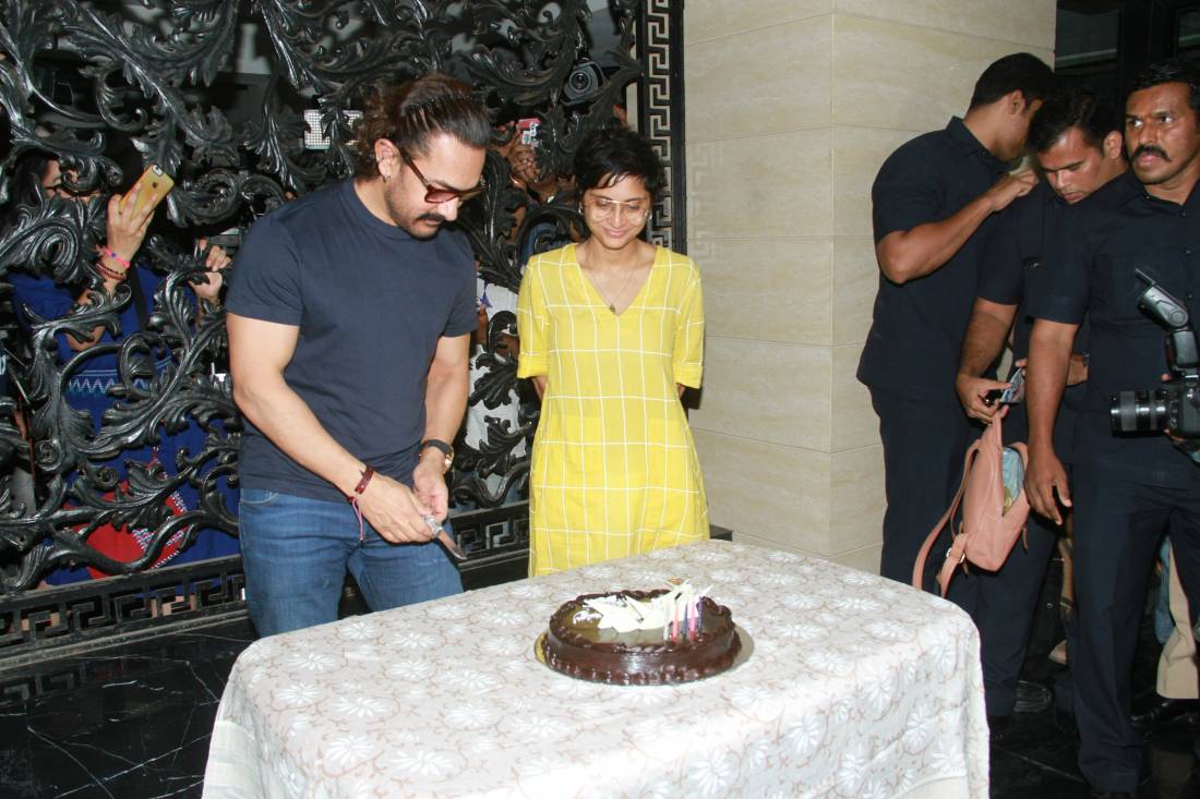 Superstar Aamir Khan who turned a year older today celebrated his birthday by cutting a cake and interacting with fans and media at his Mumbai residence.