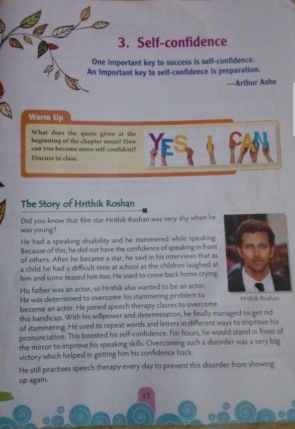 A picture is doing the rounds of the internet, which captures his fight to overcome the same in the form of a lesson in Self Confidence. A handle shared, “Felt bored, so I was reading a textbook of my niece. I was surprised to see this page. This is from the value education textbook of class 6. Whoelse can teach self-confidence better than him? Proud of you @iHrithik sir ❤️ @HrfcTamilnadu @HrithikRules @HrithikInspires”
