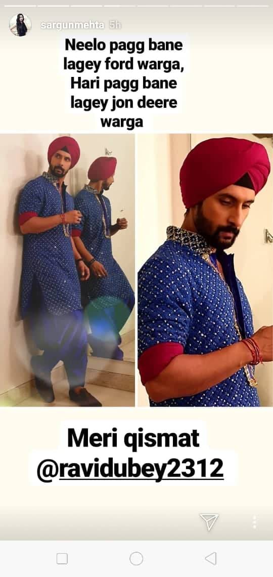 Fans were super-excited to see Ravi in turban, donning a mischievous look on his face. Among those who were impressed was none other than his wife Sargun Mehta. After the breakthrough success of her new Punjabi film Qismat, she took to Instagram and posted Ravi’s pic with a dialogue from the same movie to express her feelings on seeing her husband in turban.