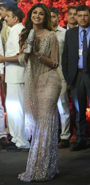 Shilpa Shetty dazzled in a fishtail shaped lehenga with her diamond necklace and a dupatta. Her outfit perfectly complimented her beautiful frame.