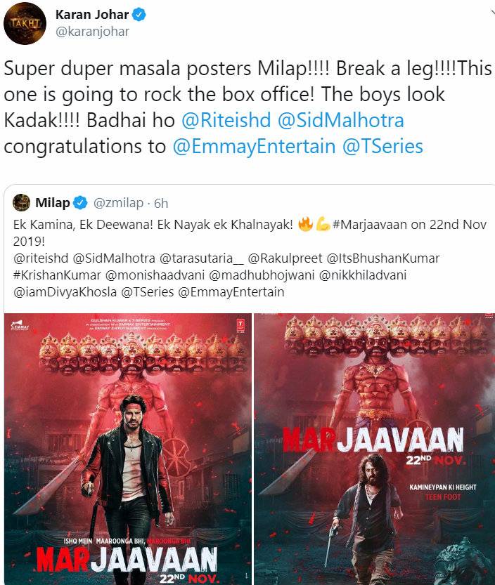 Produced by Bhushan Kumar’s T-Series and Monisha Advani, Madhu Bhojwani and Nikkhil Advani’s Emmay Entertainment, the film is directed by Milap Zaveri. Starring Sidharth Malhotra, Riteish Deshmukh, Rakul Preet Singh and Tara Sutaria the movie will release on November 22.