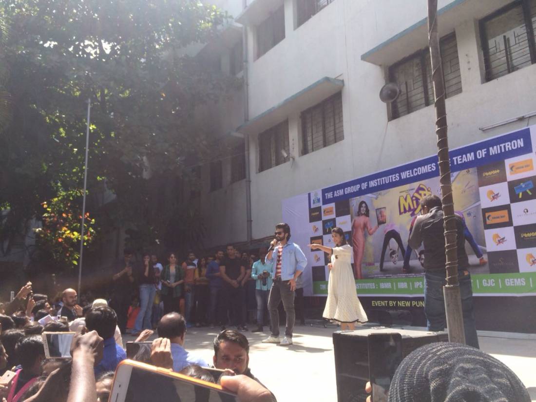 Mitron stars Jackky Bhagnani and Kritika Kamra recently visited ASM College in Pune for their film's promotion.