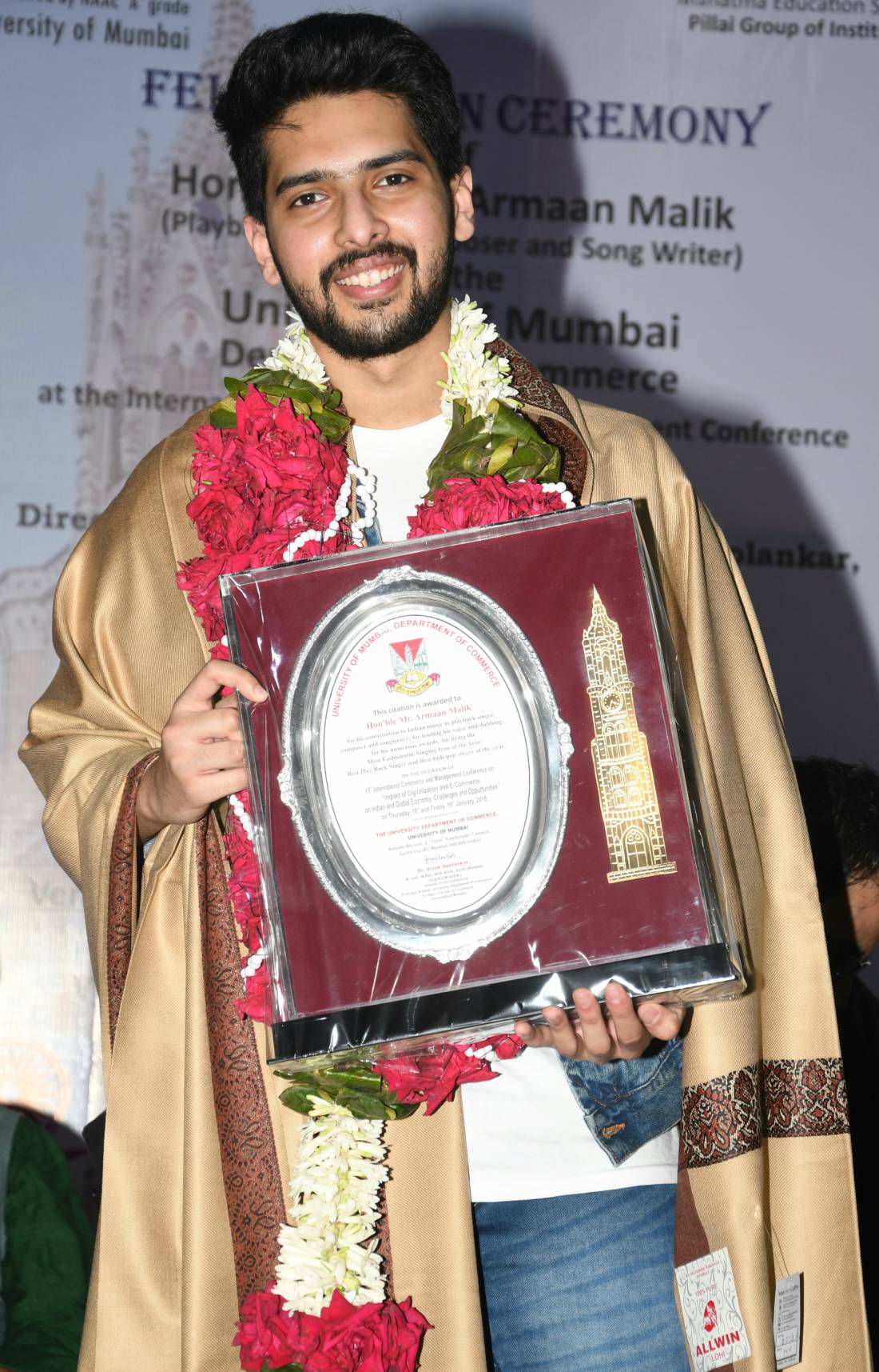 For his exemplary contribution to the Indian Music Fraternity, Armaan Malik the youngest musician was felicitated by University of Mumbai as a citizen par excellence, as a highly talented individual who has ushered in lasting innovation to the Indian screen and the Indian diaspora and has carved a niche in the hearts and minds of people across the length and breadth of the globe.