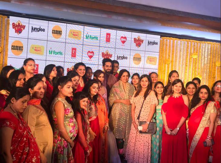 Earlier today , The Kaushiks (Ayushmann's reel family in the film) hosted a get together with over 50 expecting mothers, marrying the traditional trend of Godh Bharaai with the contemporary baby shower celebrations.