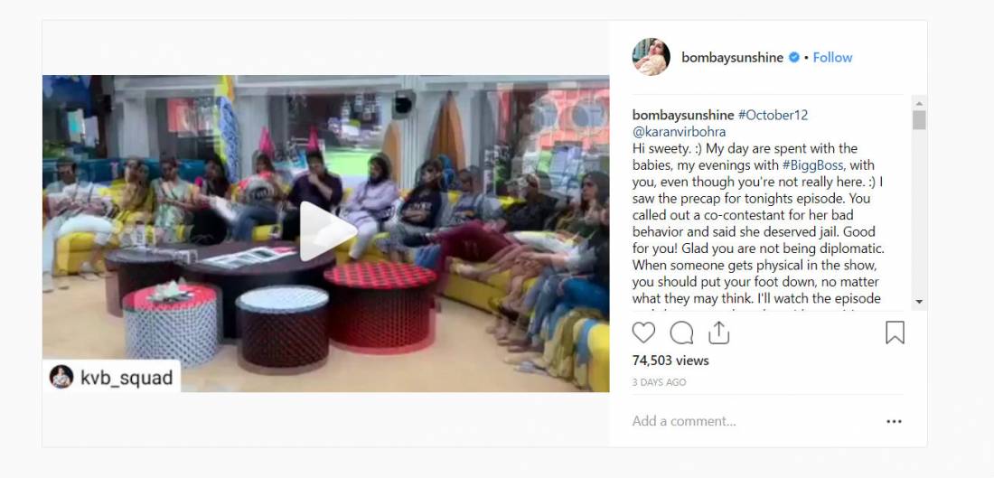 Teejay is one supportive wife & promised Karanvir that he can be a stay-at-home dad & she'll work. She wrote in a sweet post, 'Congrats, #sweety, on being the first contestant to enter #BiggBoss tonight! Loved your entry, loved the act. :) I know entering this show was a hard decision to make, but I'm very proud of you. I know you're doing it for the right reasons and I am with you one hundred percent. You once said you'd #love it if I worked so you could be a stay-at-home Dad! ;) Sorry, this time YOU had to be the one to go! ;) Next project, you stay with the #babies and I'll work! '