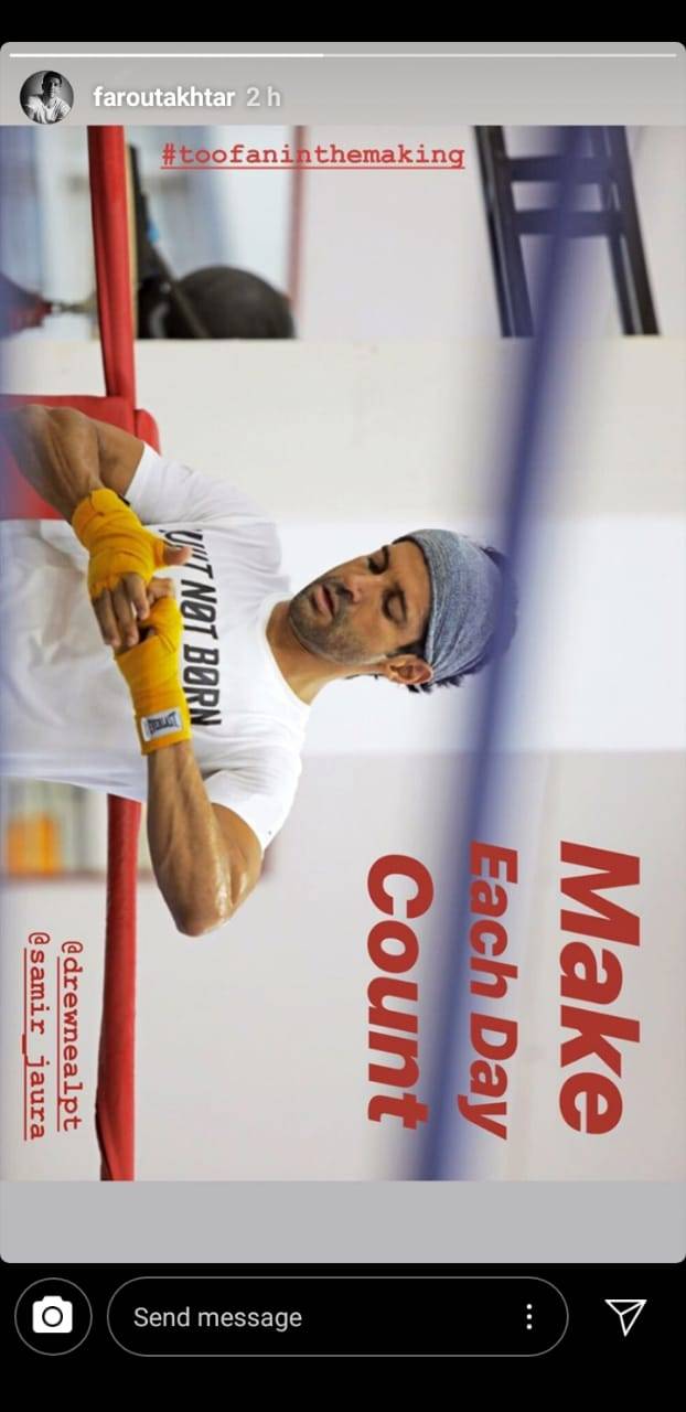 Farhan Akhtar is currently prepping in full swing to get in the skin for his character in the movie, Toofan in which he will be essaying the role of a boxer. The actor is leaving no stone unturned for his prep and giving no day a miss from his workout regime.