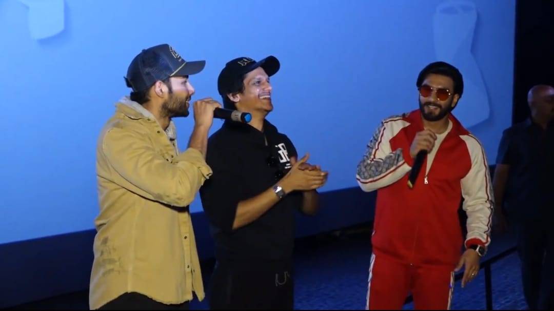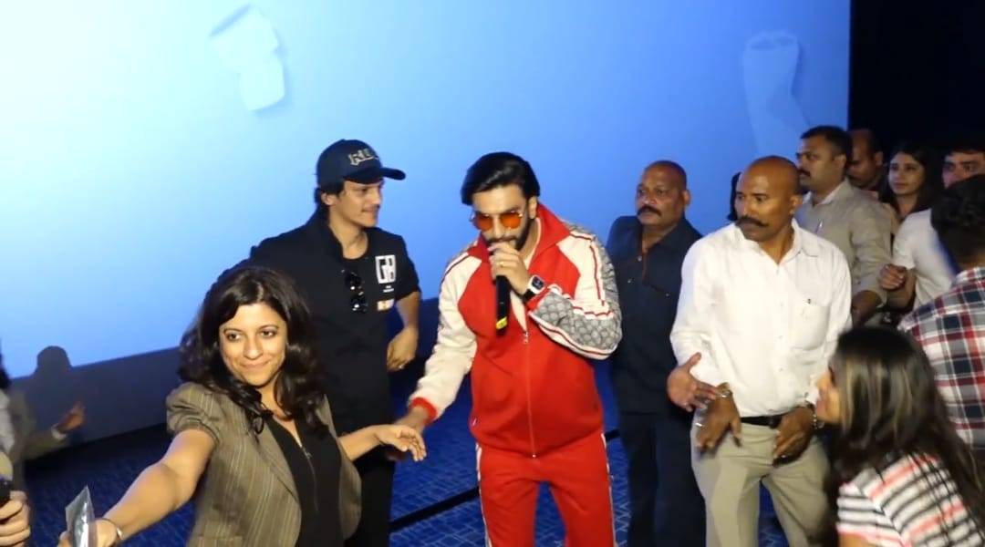 Enjoying the humongous success of her latest film Gully Boy, Zoya Akhtar along with her Gully Boys Ranveer Singh, Siddhant Chaturvedi, and Vijay Varma presented a surprise visit theatre in Mumbai.